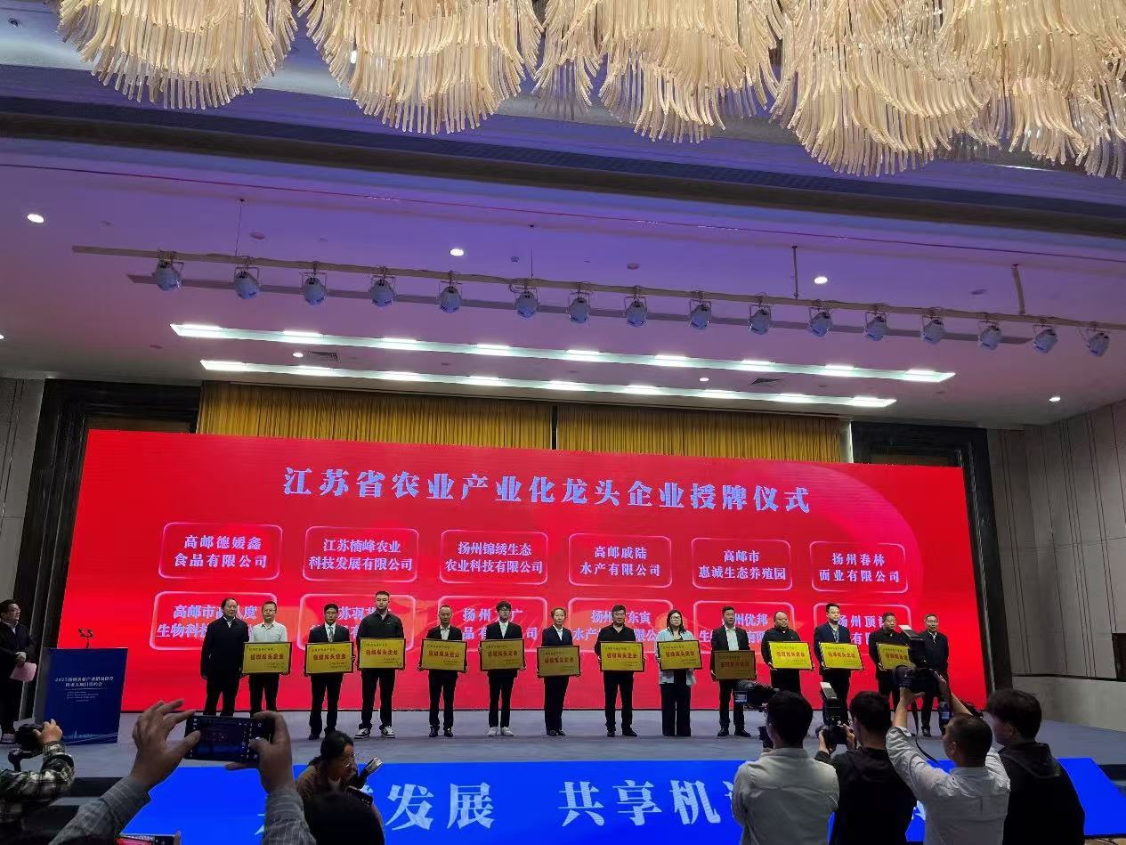 在這個最美人間四月天,不負春光與時行,2025揚州“煙花三月”國際經貿旅遊節舉行了。旅遊節一直是揚州市推進經貿合作、發展文化旅遊、展現名城風貌的重要平台,至今已經成功舉辦了二十三屆,今年是第二十四屆。在國際經貿旅遊節期間,4月17日舉行了江蘇省農業產業化龍頭企業授牌儀式,黄瓜小视频网站董事長鄭勇鋒代表企業,上台獲得了江蘇省農業農村廳和揚州市人民政府頒發的《省級龍頭企業》榮譽牌匾。