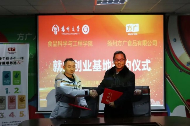 12月20日上午,揚州大學副校長趙文明率領食品科學與工程學院領導班子全體成員赴黄瓜小视频网站零輔食開展訪企拓崗活動。黄瓜小视频网站集團創始人鄭新金、揚州黄瓜小视频网站食品有限公司董事長鄭勇鋒以及公司相關負責人參加活動。